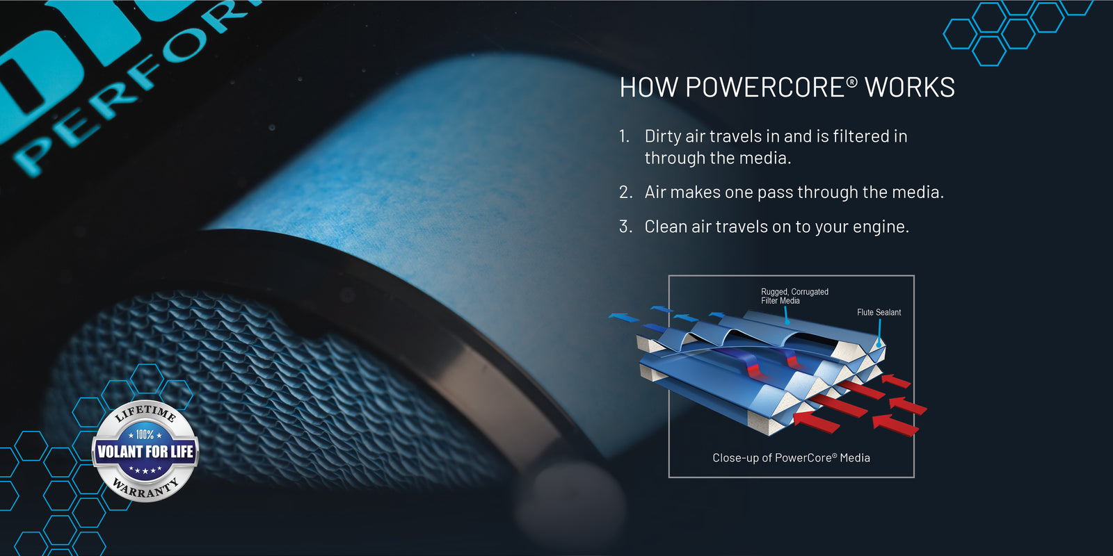 It's simple, Volant intakes with Donaldson® PowerCore® filtration are the best off-road air intake solution on the planet. Not all air filters are created equal. Filters are purpose built for the environment in which they are used. Volant intakes with Donaldson® PowerCore® air filters are built specifically for harsh environments to provide maximum filtration, enhanced performance and elevated levels of engine protection. Designed with Ultra-Web® nanofibers, Donaldson® PowerCore® air filters filter out microscopic debris other air filters can't. Better yet they offer a true no-maintenance filtration option. Simply install your Volant intake with Donaldson® PowerCore® air filter and forget it.